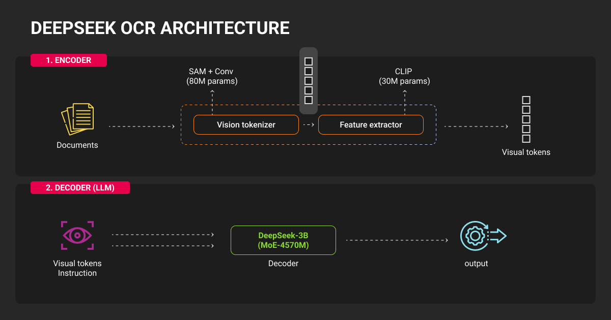 DeepSeek OCR is an OCR deep learning vision-language model (DeepSeek-VL2) that extracts text from document images in 100+ languages. According to the DeepSeek OCR paper, it achieves 97% benchmark accuracy but experiences 15-25% degradation in production on complex layouts and domain-specific documents.