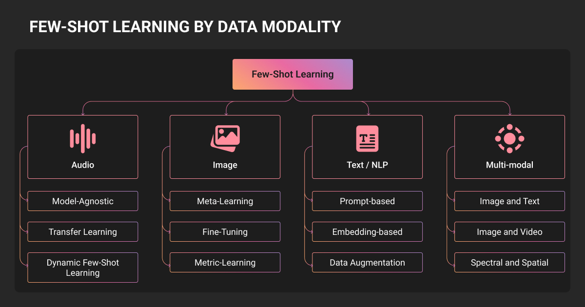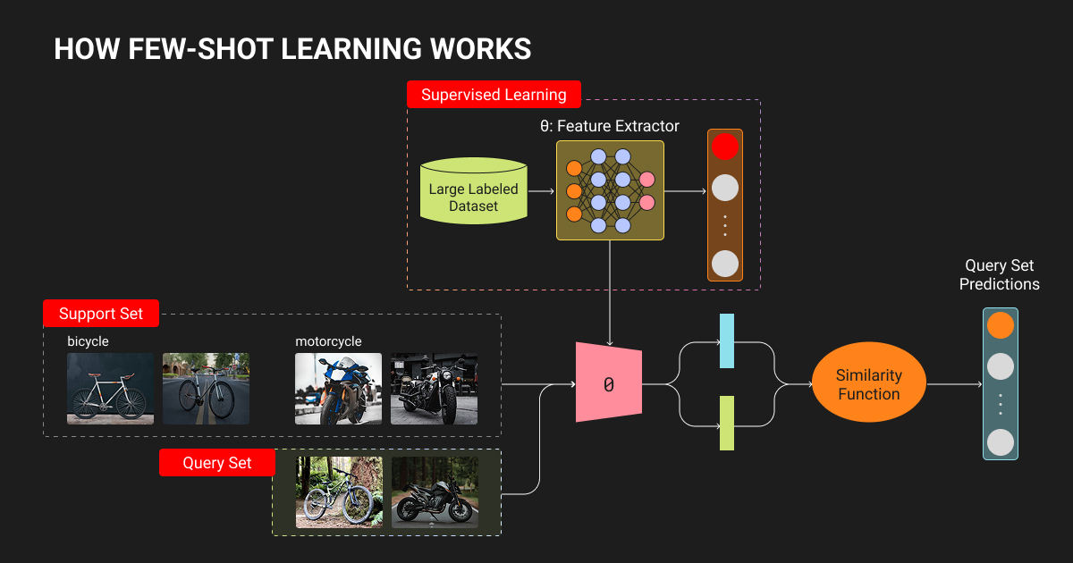 Few-shot learning becomes necessary for inherently rare events where examples don’t exist at scale. Or privacy-constrained scenarios where data can't be shared or pooled. And constantly evolving categories where waiting months for new data isn't viable.
