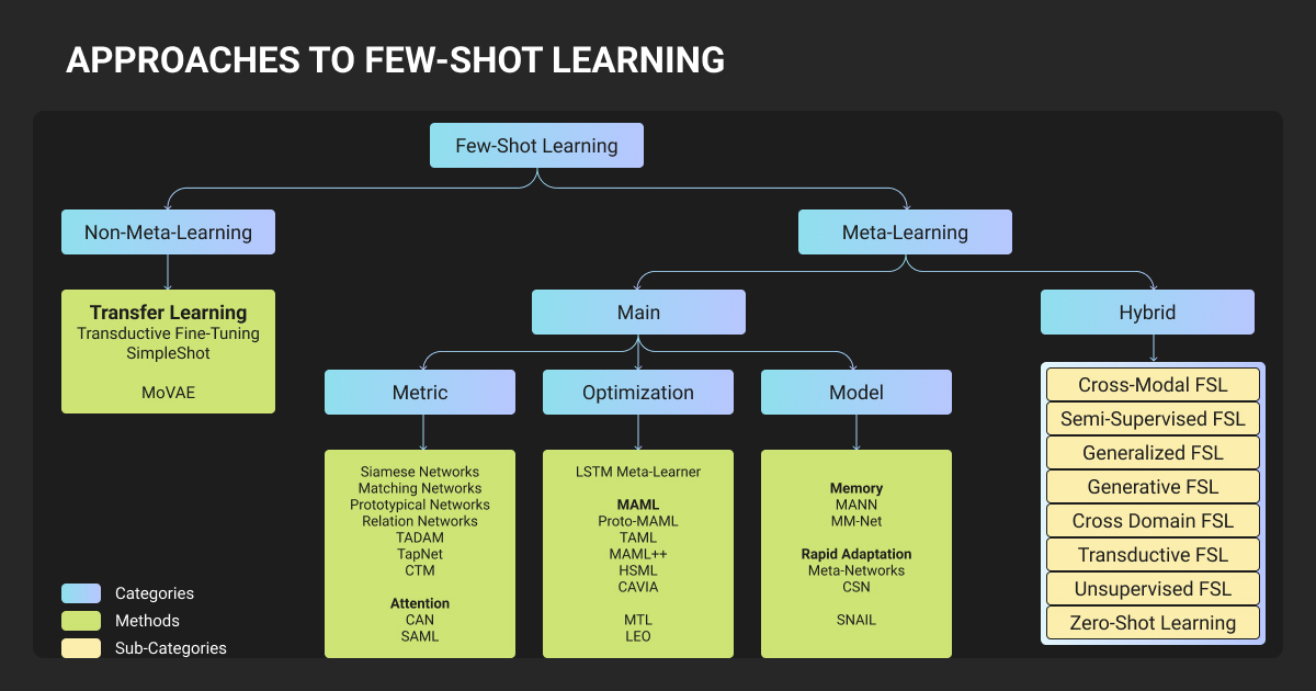 This guide explains metric-based, optimization-based, and transfer learning approaches with real performance benchmarks and when to use each method.