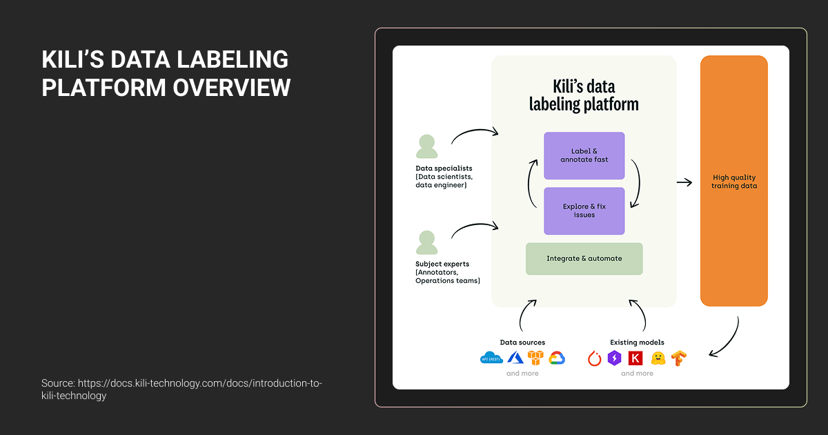 Kili Technology takes the opposite approach. Platform-first company with optional managed services. Founded in 2018, they built comprehensive labeling infrastructure for data science teams wanting direct control.