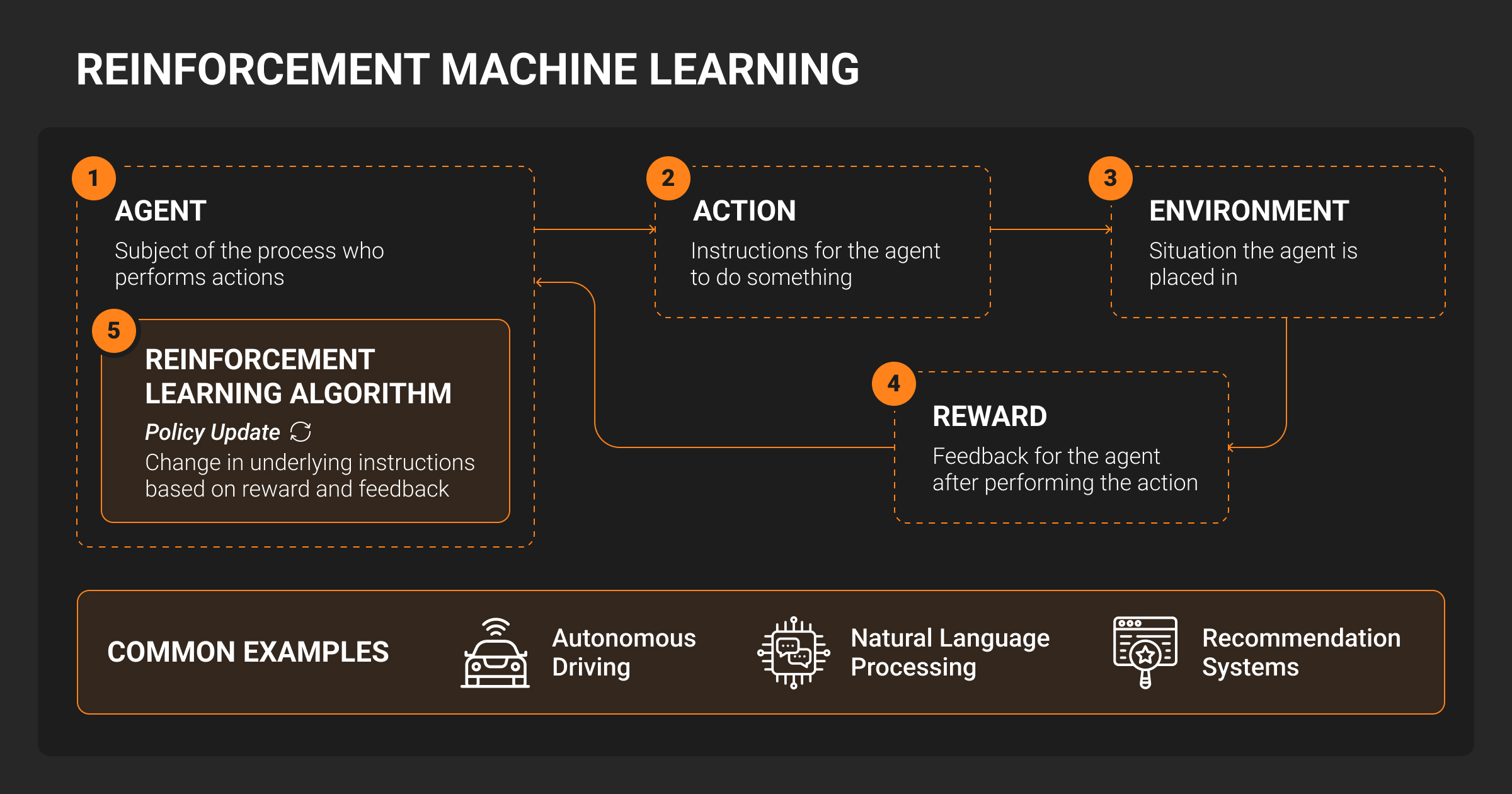 Reinforcement learning (RL) trains agents to take actions in an environment by maximizing long-term reward. Think robotics, recommendation engines, or autonomous control systems.