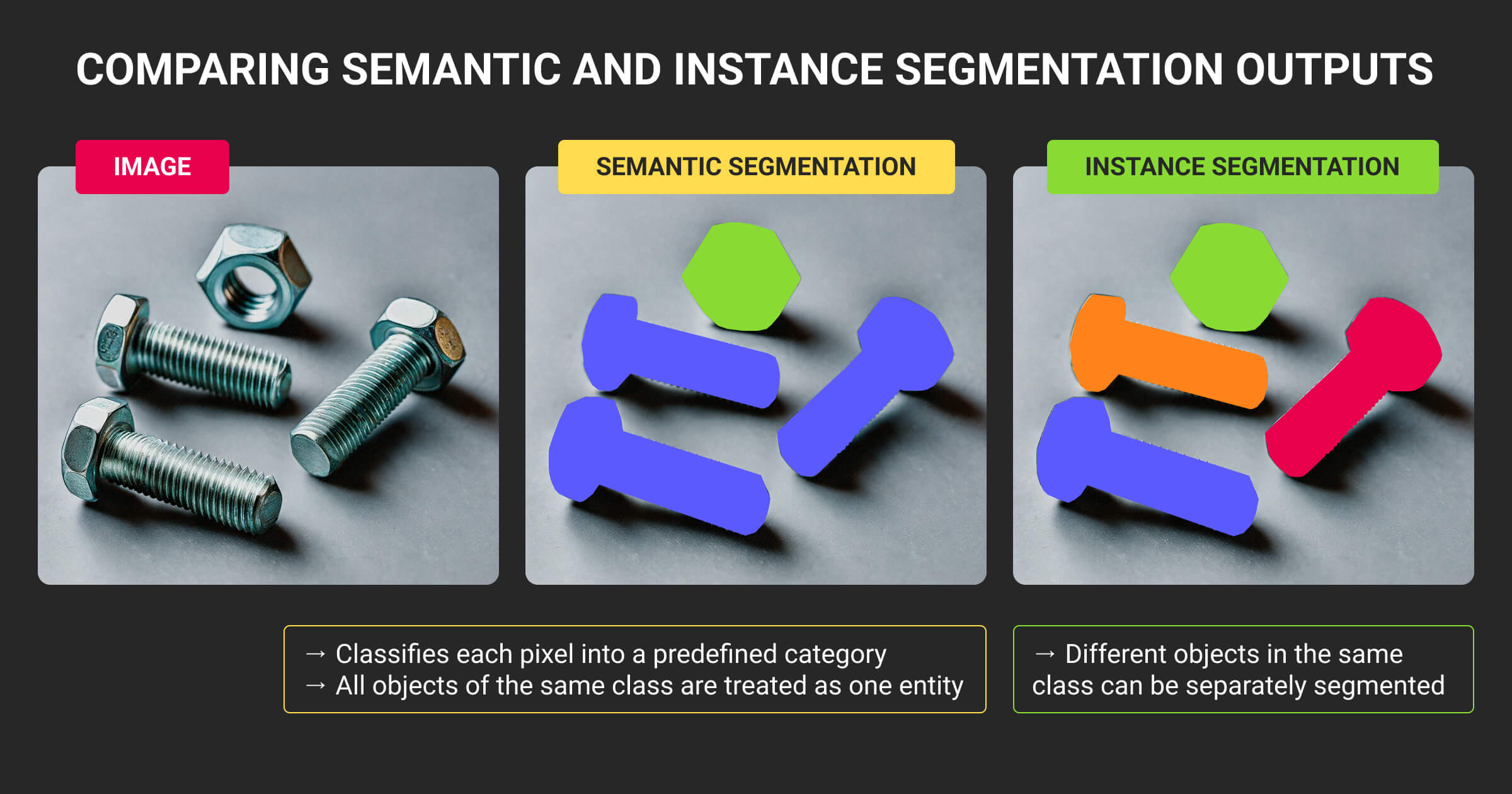 The decision between semantic and instance segmentation ML should be driven not just model preference. For ML engineers, the goal is to match: