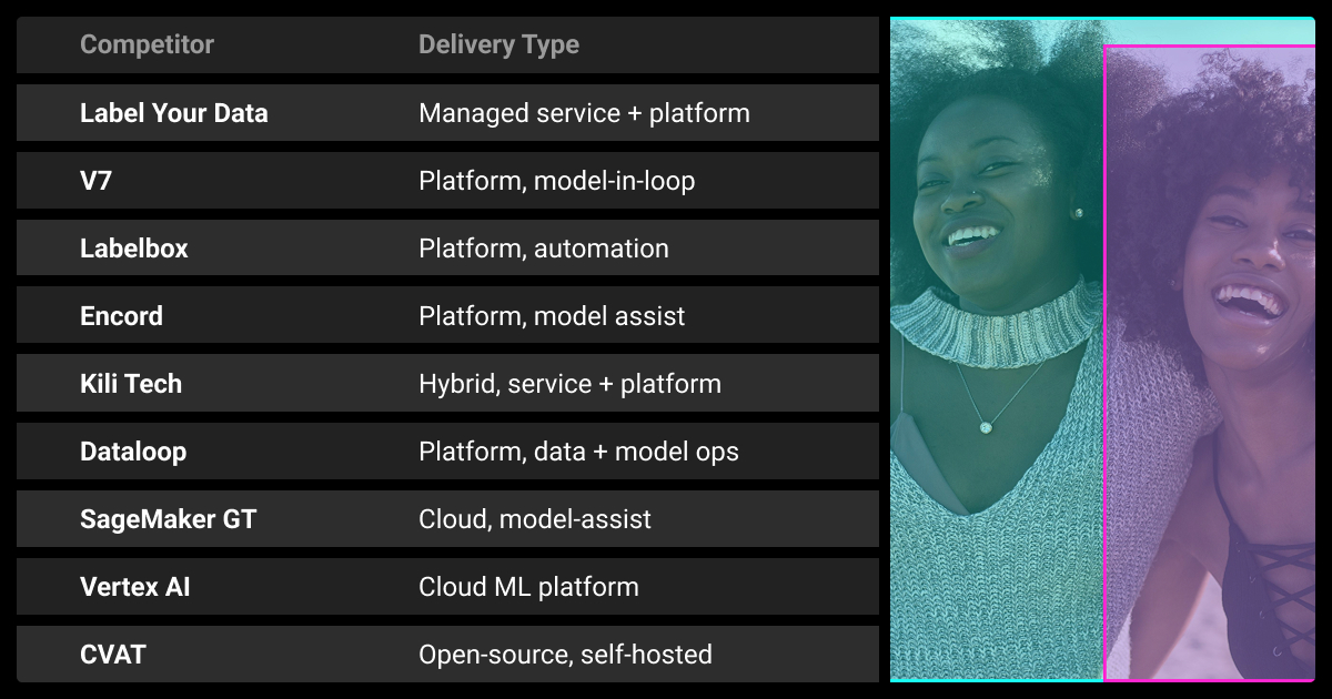 SuperAnnotate is only one option in a crowded space. Competing platforms differ in focus: some prioritize automated data labeling, others emphasize managed services, and a few stand out for open-source flexibility.
